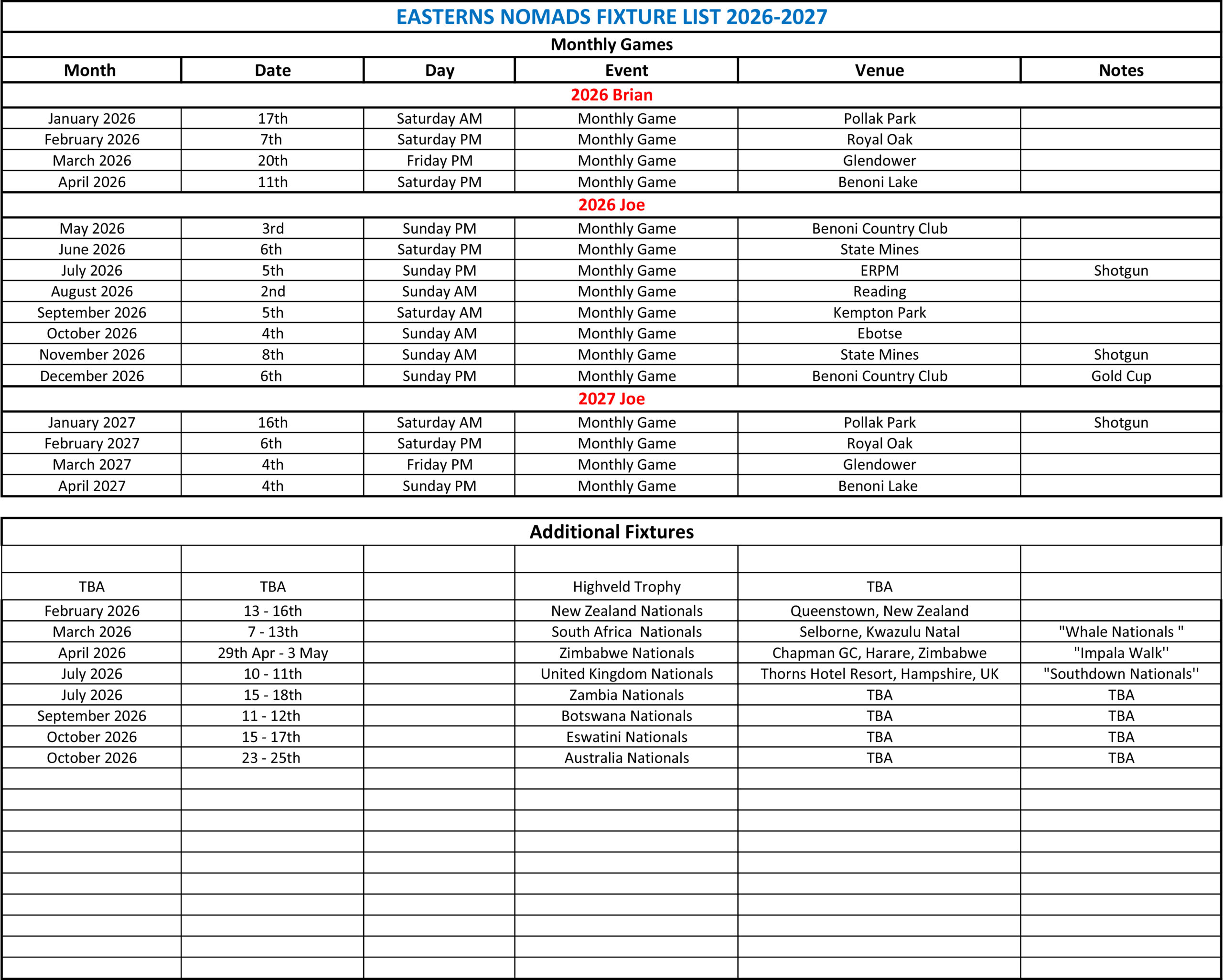 11th April ’26 Saturday PM Game